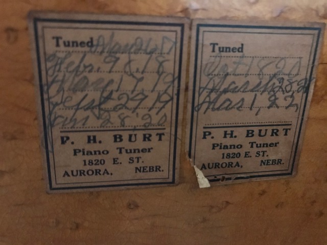 I tuned a piano well over 100 years old and it had these stickers that told when it was tuned. First date is from 1917. I really enjoy that fact that I am doing the same job people have done for hundreds of years. In fact tuning the same piano someone tuned over 100 years ago. Its a good craft and I consider myself lucky to be making a living at it.
