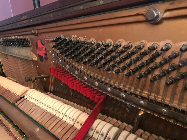 Time and time again I tell people to have a technician look a piano before spending money on moving it. This piano will not hold a tuning. You can see the white-ish outlines around the tuning pins. This tells me someone tried to “dope the block” with tuning pin tightener. Basically trying to glue the pins so it will hold a tuning.