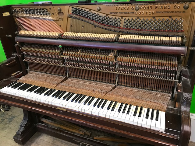 A customer had a beautiful but very old Ivers and Pond full sized upright. The problem is it would no longer hold a tuning. A good candidate for repining and restringing.