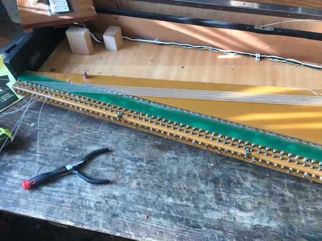 I decided not the re-yarn and use the Clavigel. Much easier with beautiful results. On to the hammer alignment, tuning,electronic repair. Turned out to be a much bigger job then originally thought but it needed to be done and will now go on for years of trouble free playing.